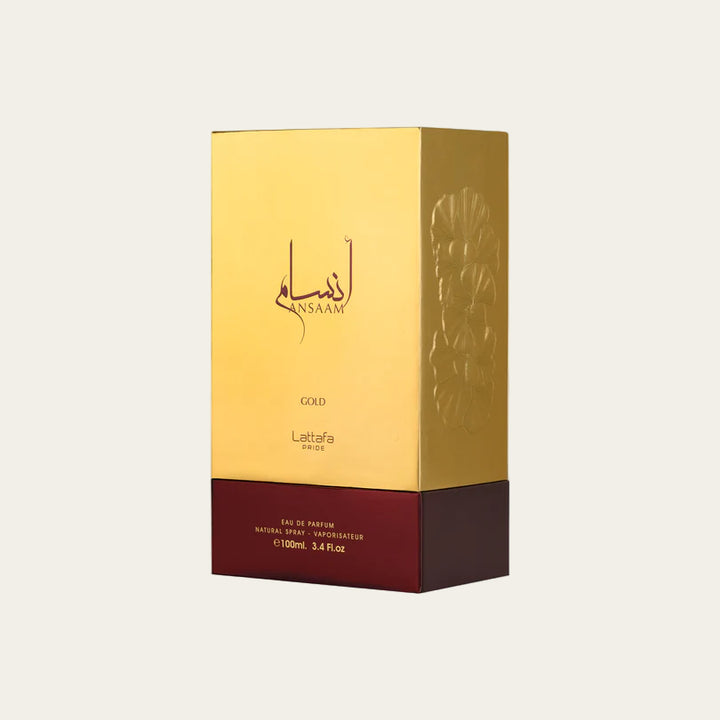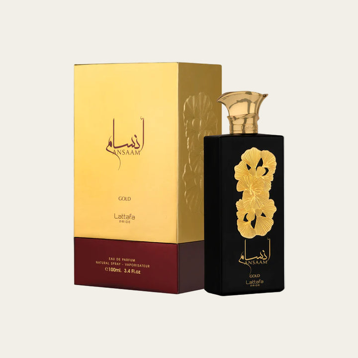 Ansaam Gold is a unisex fragrance by Lattafa that blends sweet-fruity, floral and soft gourmand elements. It opens with juicy pear and mandarin for a fresh, vibrant first impression. As it develops, soft florals and candy-like sweetness create a light, feminine, playful middle. The dry-down becomes smooth and cosy with creamy vanilla, soft musk and a hint of raspberry — leaving a sweet, powdery, slightly fruity-vanilla trail. It works well for those who enjoy a sweet, fruity-floral scent that’s feminine yet wearable.