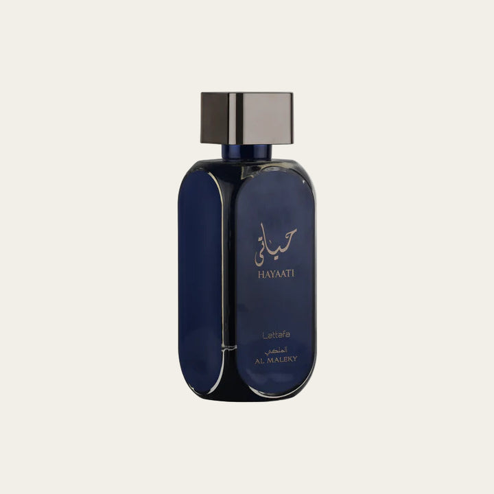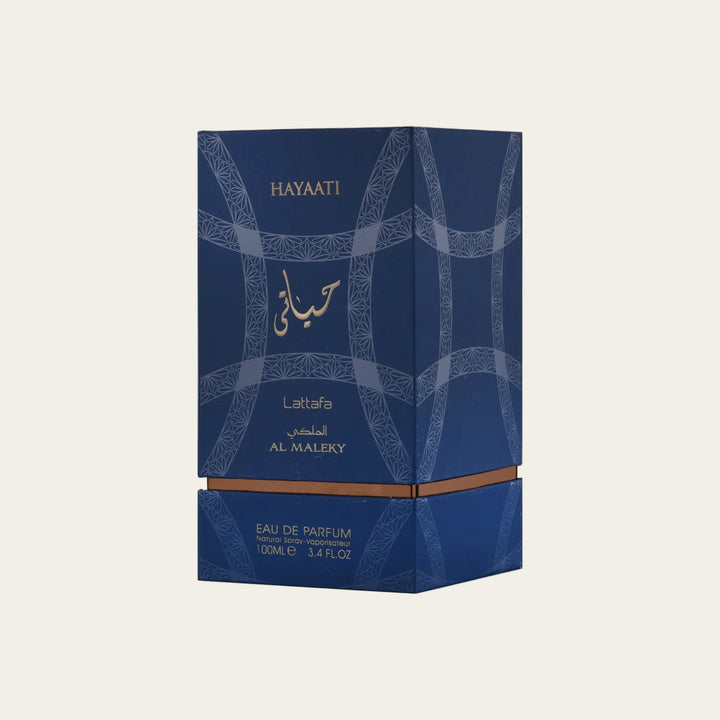 Hayaati Al Maleky is a unisex / men‑leaning oriental‑spicy / woody fragrance by Lattafa that combines spicy freshness, woods and warm amber/musky depth. It opens with a spicy‑citrus burst giving an energetic, vibrant first impression. The scent then evolves into woody and resinous layers with a bold, rich character. The dry‑down rests on warm amber, musk and ambergris, leaving a warm, spicy‑woody, slightly resinous trail — perfect for those who enjoy spicy‑woody perfumes with character, suitable for both day and evening wear.